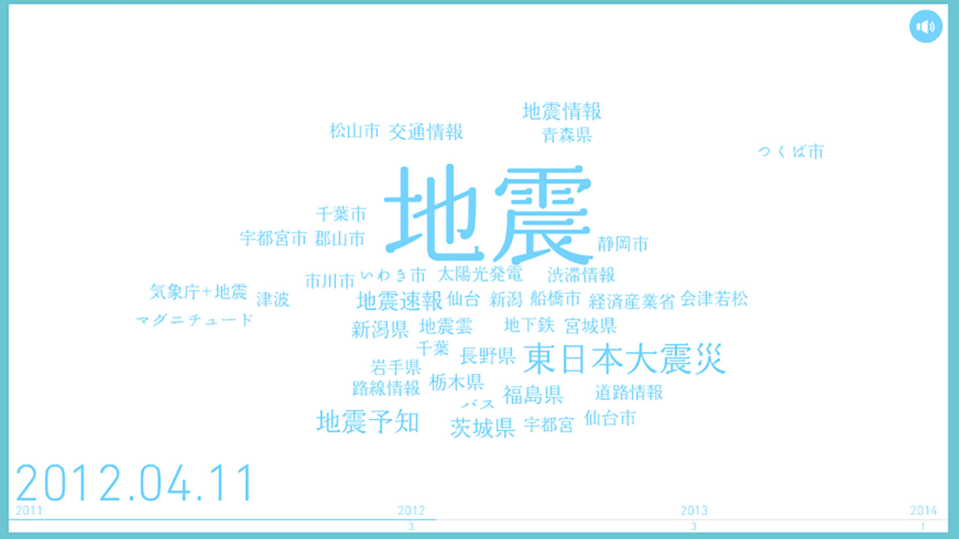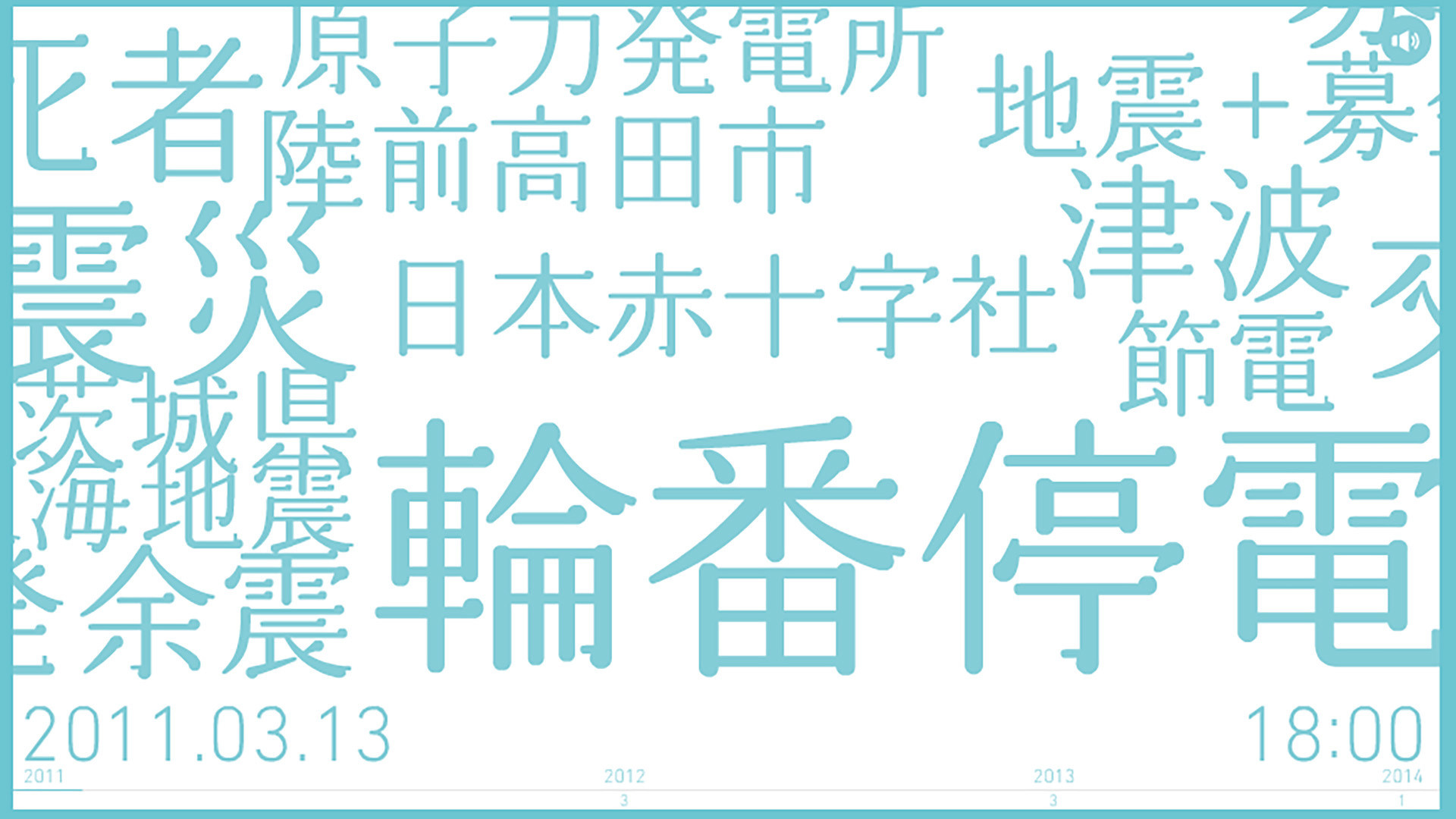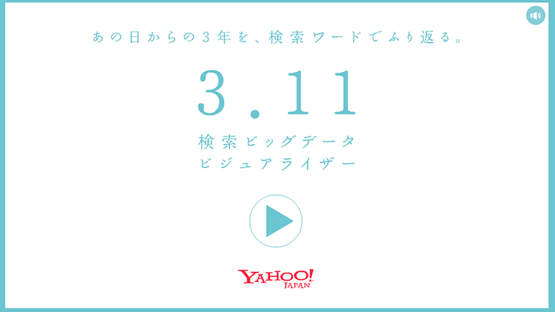This is a project to support Tohoku disaster area based on the keyword 「search for 3.11 Be a part of Tohoku recovery」 When users search 「3.11」on yahoo on 11th of March, Yahoo Japan ! Make a donation of 10yen per person on behalf of users. We created visualizer contents to analyze and visualize search keywords about Great East Japan Earthquake on Yahoo search in past 3 years. Tell users objectively the situation when the great earthquake struck, the state of reconstruction until now that people grew less and less concerned about as time goes on by converts numbers of retrival into size of characters and displayed on a time series. By this, the own feelings at that time and memories of the quake get back. The goal of this project is make people reflect on the disaster area and the restoration once again on 11th March that memories are fading little by little and also change their thoughts into reconstruction support. This project produces big results as about 90 thousand shared on Facebook, about 20 thousand tweets and more than 2,560,000people participated in this project. We continue this project with updating continually every year. / Sho Trii